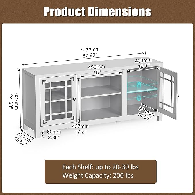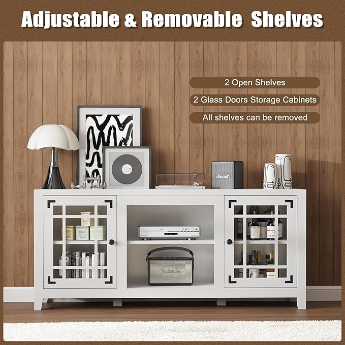 - [Easy Assembly and Maintenance] This TV stand is easy to assemble with the included detailed instructions. The glass doors are easy to clean, and the overall cabinet design ensures low maintenance, allowing you to enjoy your home with minimal effort.