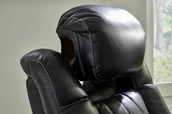 Signature Design by Ashley Caveman Den Modern Faux Leather Power Reclining Loveseat with Console, Adjustable Headrest and LED Lights, Black