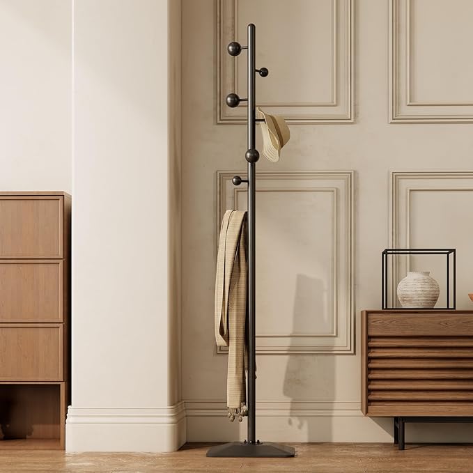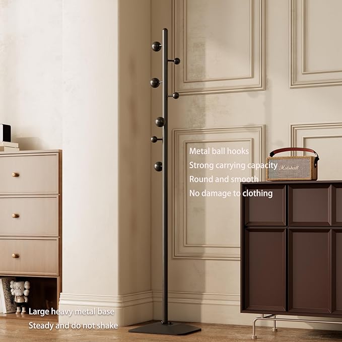 - 【Timeless Sphere Hook Design】The coat rack freestanding With 4 large and 3 small smoothly polished metal spheres, these hooks are guaranteed never to damage your clothing.Their uniquely elegant design brings a fashionable flair to your office, hallway, entryway, entrance, bedroom, and more, enhancing your space with their distinct and exquisite beauty.