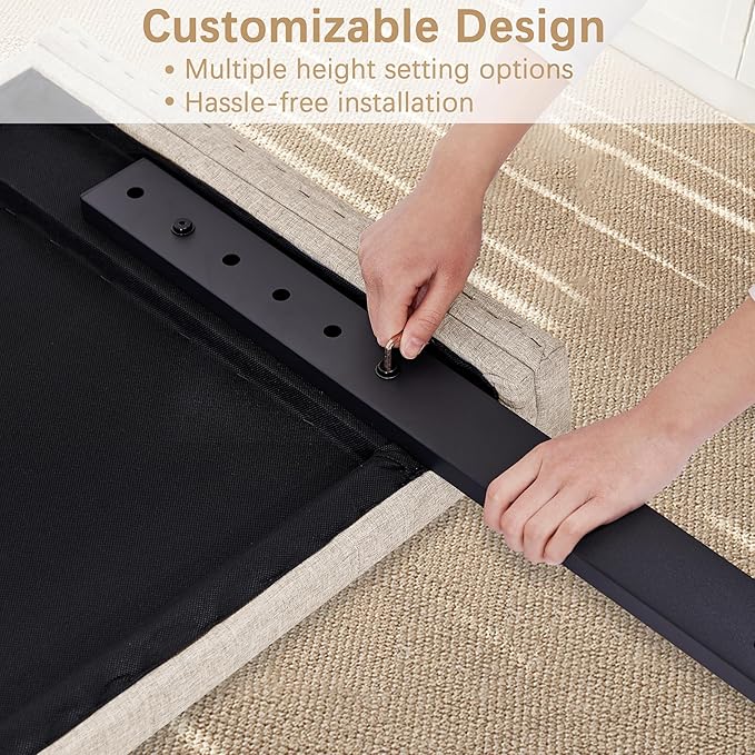 - 【Premium Linen Materials】King headboard is made of premium linen fabric that resists scuffing and fading, giving you a silky, comfortable feel. The main headboard is filled with foam and polyester fiber, which is highly resilient, providing you and your family with a comfortable moment of rest and relaxation.
