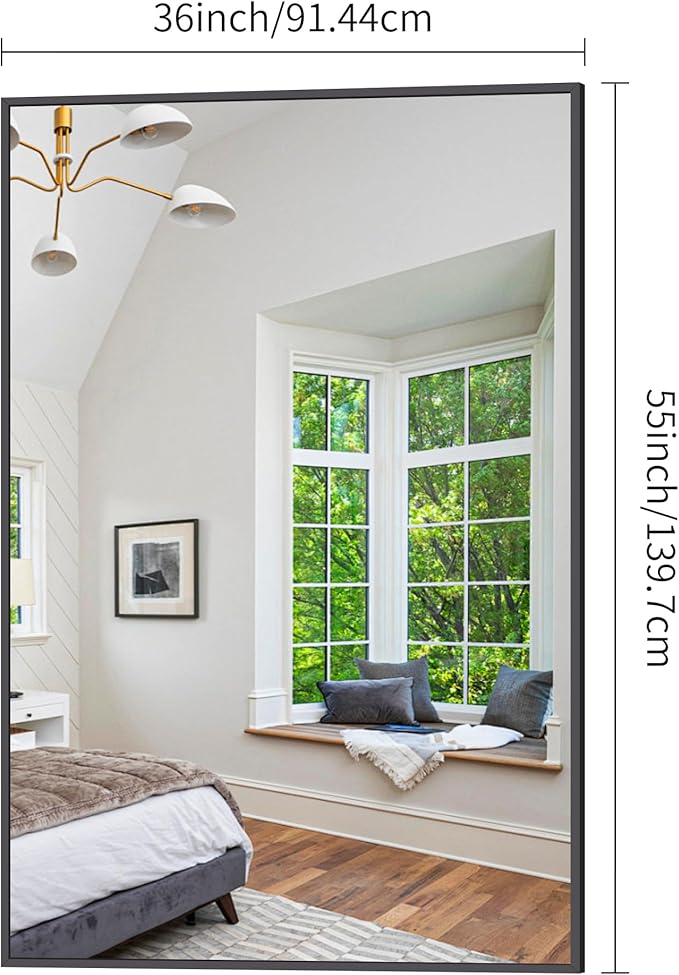- RECTANGLE DESIGN :The 55x36 inch Large size mirror rectangle design and measures 55" x 36"Increase the sense of room space and depth Its unique shape adds a touch of sophistication and upscale beauty to your home