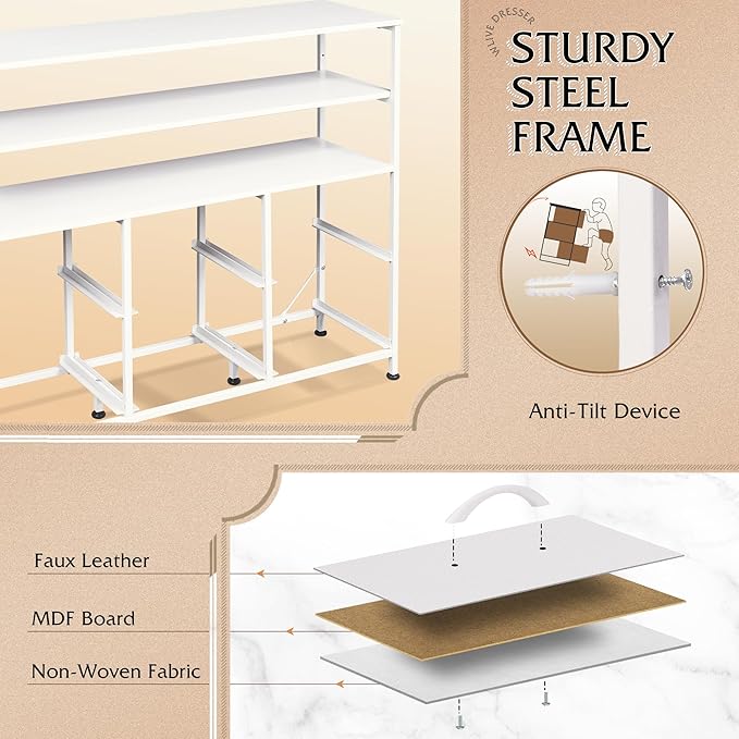 - ă⨠Stable Structure Safety AssuredăOur television stands is designed with 15mm thickened metal steel frame with cross support rods for durability. The Media Stand bearing up to 160LBS can still remain stable without tipping, equipped with anti-tilt device, which can easily fix the cabinet to the wall, ensuring the safety of you, your family and pets, and enjoying a convenient life!