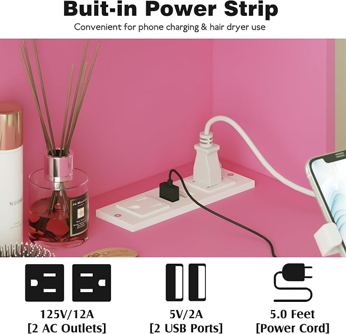 - [Power Outlet] The vanity bench is equipped with two sockets and two USB ports. It provides great convenience for charging your phone or other electronic device.