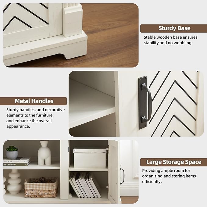 Farmhouse TV Stand for 65+ Inch TV, 25" Tall Entertainment Center with Barn Door, Rustic TV Stands for Bedroom with Adjustable Shelf, Wooden TV Consoles for Living Room, Antique White