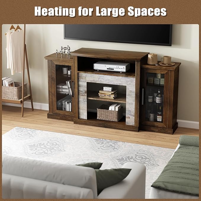 59 inch TV Stand, 32 inch Tall Entertainment Center with Printed Stone Texture, Farmhouse Console Table with Display Storage Cabinets for Living Room, Bedroom, Study, Rustic Brown