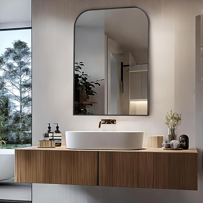 - Stylish Design: the wall mirror is very modern, making your bathroom more elegant and noble, extra eye-catching. Ideal for decorative vanity mirrors, making the space more spacious and bright