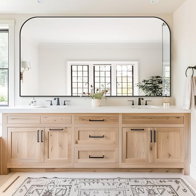 - Stylish Design: the wall mirror is very modern, making your bathroom more elegant and noble, extra eye-catching. Ideal for decorative vanity mirrors, making the space more spacious and bright