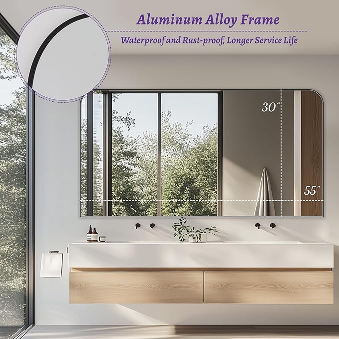 Bathroom Mirror, Wall Mirrors, Black Metal Framed Wall-Mounted Mirrors, Bathroom Vanity Mirror for Over Sink, Living Room, Bedroom, Entryway, 55x30 Inch, Black
