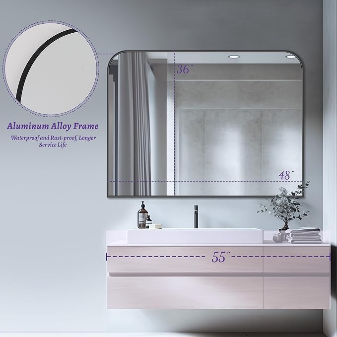 - Stylish Design: the wall mirror is very modern, making your bathroom more elegant and noble, extra eye-catching. Ideal for decorative vanity mirrors, making the space more spacious and bright