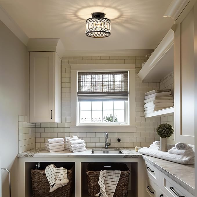 - Contemporary Design: The semi flush mount ceiling light features K9 crystals, which is bright and shiny. When the light is on, the crystals refract light into a dazzling display, scattering elegant patterns across your ceiling. Adding a touch of sophistication to your home