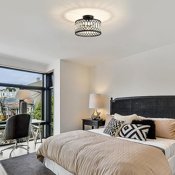 - Contemporary Design: The semi flush mount ceiling light features K9 crystals, which is bright and shiny. When the light is on, the crystals refract light into a dazzling display, scattering elegant patterns across your ceiling. Adding a touch of sophistication to your home