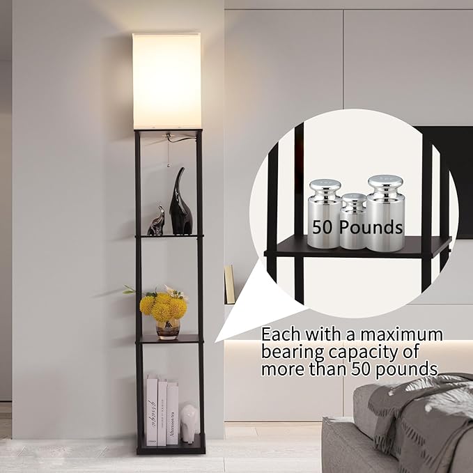 - 【Storage space 】Our floor lamps maximize your storage potential with 3 layers of high density fiberboard, each with a maximum weight of over 50 pounds, providing plenty of space to display your precious photos, books and plants. as well as daily necessities such as mobile phones.This larger storage floor lamp is both practical and decorative for your home and matches perfectly with your furniture.