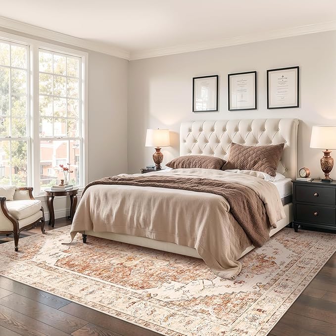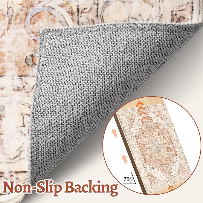 - 【Non-Slip Backing】Experience peace of mind with every step on our vintage area rug, featuring an innovative TPE non-slip rubber backing. Designed to keep your carpet securely anchored, it effortlessly holds its ground against movement and slippage. Provides safety and stability for high-traffic areas such as entrances or front doors, reducing the likelihood of people and pets slipping, making it easy to walk and play
