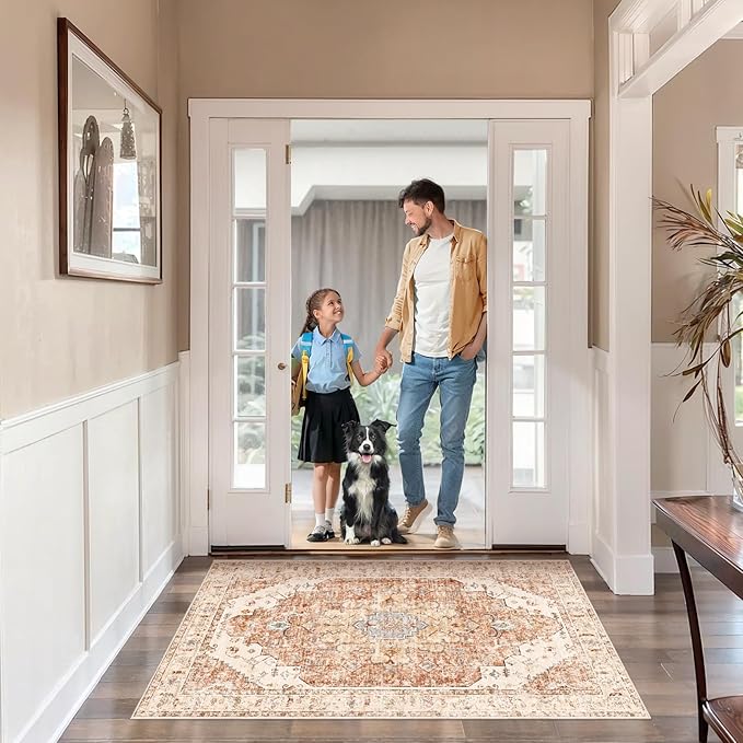 - 【Non-Slip Backing】Experience peace of mind with every step on our vintage area rug, featuring an innovative TPE non-slip rubber backing. Designed to keep your carpet securely anchored, it effortlessly holds its ground against movement and slippage. Provides safety and stability for high-traffic areas such as entrances or front doors, reducing the likelihood of people and pets slipping, making it easy to walk and play