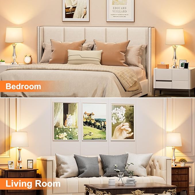 - 【E26 LED Bulbs Included】 No need to worry about purchasing separate bulbs for these nightstand lamps set of 2. We have gone the extra mile by including two premium E26 LED bulbs that perfectly complement the 3-way dimmable lamps for living room end tables. Experience lighting perfection with our nightstand lamps that boast a flicker-free and ultra-quiet operation. Indulge in the tranquil ambiance and be captivated by the mesmerizing glow that these bedroom lamps set of 2 effortlessly emit.