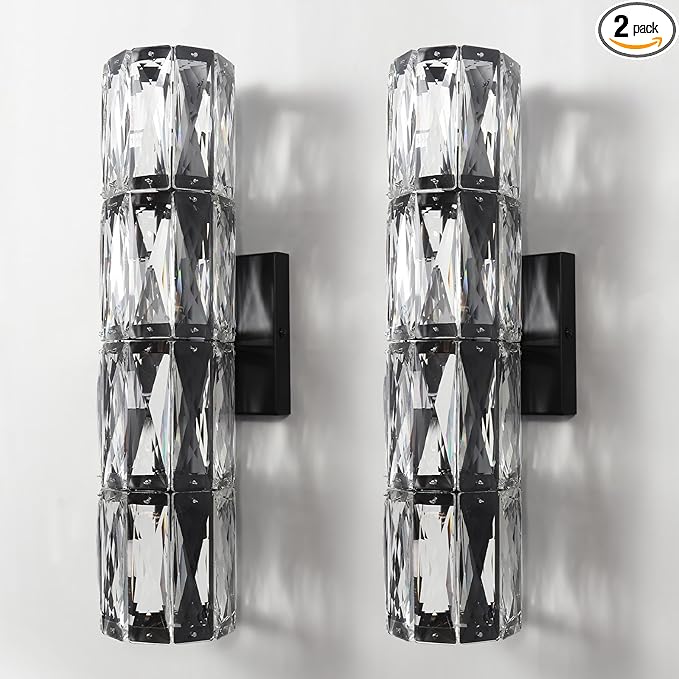 - [Modern Luxury Design Wall Light Sconces] The bedroom wall sconces set of 2 adapts matte black and high quality level crystal. With multi sided irregular polygonal crystal dimensional cutting and different crystal angles to refract bright and shadow from multuple angles.It can bring your home a modern, luxury and elegant atmosphere.