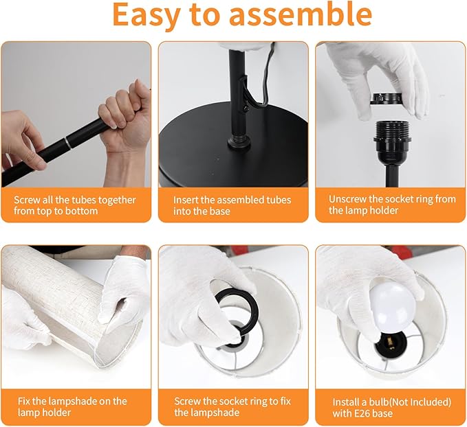 - Easy to assemble: Assembly of this pole lamp for Living room is self explanatory, you can twist the poles together, insert them in the base. The lampshade comes rolled up and then wrap it around the wire frame and close the velcro in the back.
