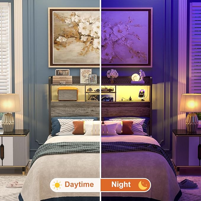 - 【Head board with Smart Led Light】Our LED headboard features over 60000 colors and multiple flashing modes for you to choose. The lights can be synced to music or your recordings, creating the perfect atmosphere you want for your leisure time. And with timer function, let’s DIY the room to relax in bed.