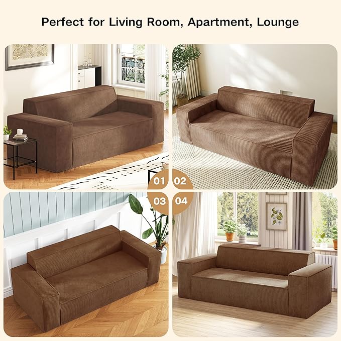 Sofa-in-a-Box, Memory Foam 3-Seater Couch, No Installation & Easy to Transport, Deep Seat Modern Sofa with Corduroy Fabric, Couch for Living Room, Bedroom, Apartment, Home Office, Brown