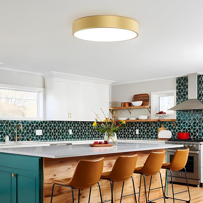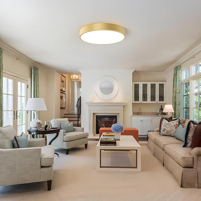 - Material and Contemporary Design: This large golden light fixture ceiling mount is made of high-quality metal frame and the lampshade is made of ACRYLIC, which is durable and non-glare. Simple shape and brass gold finish design, can perfectly match any decoration. The semi flush mount ceiling light not only provides you with lighting, but also enhances your sense of life atmosphere. It is a good choice for your home decoration.