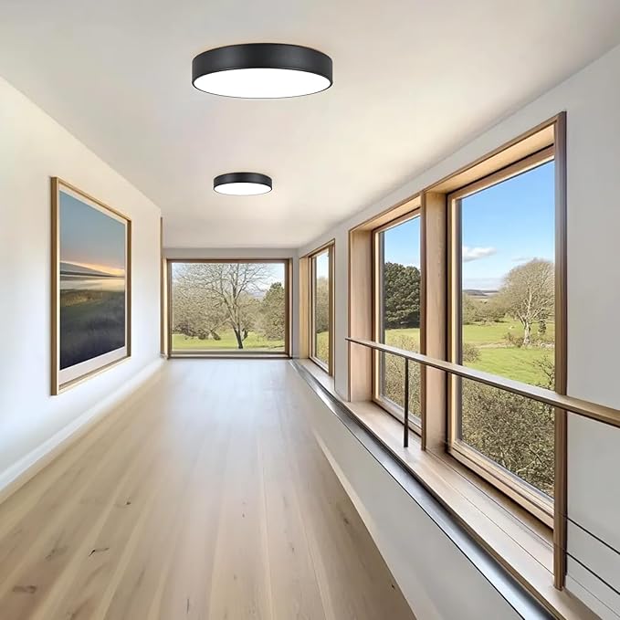 - MODERN MINIMALIST DESIGN: The overall design of the 18.1 inch large ceiling light is contemporary with a simple structure. It is designed with a round and matte black metal frame, firm and rustic; the white frosted acrylic lampshade transmits light well, provides bright light for your home, makes the light more even and soft. Our lighting fixture will definitely be an eye catcher for anyone who steps in your house.