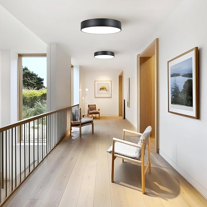 - MODERN MINIMALIST DESIGN: The overall design of the balck ceiling light is contemporary with a simple structure. It is designed with a round and matte black metal frame, firm and rustic; The white frosted acrylic lampshade transmits light well, provides bright light for your home, makes the light more even and soft. Our lighting fixture will definitely be an eye catcher for anyone who steps in your house.