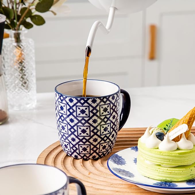 Ceramic Coffee Mugs Set - 10 OZ Large Porcelain Tea Cups with Handle for Milk Cappuccino Latte Cocoa Tea - Microwave Dishwasher Safe - Christmas Housewarming Gift -Set of 6 - Vintage Blue