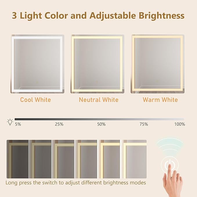 - 【SLIDING HD MIRROR WITH LED LIGHTS】 Adjustable LED lights for makeup and skincare routines. Choose from cool white, warm white, or natural light which can be pushed to both sides to meet your grooming preferences.