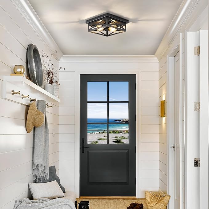 - Entryway Hallway Light Fixtures: Its unique X-shaped metal cage surrounds create a delicate industrial collection that will be an excellent addition to your entryway, foyer, hallway, porch, dining room, bedroom, living room, laundry room, kitchen, study