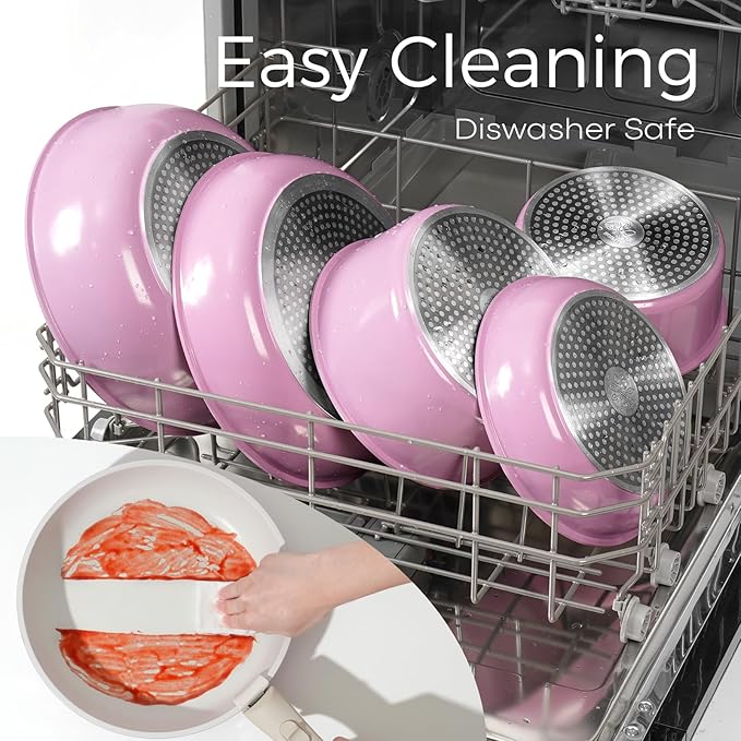 - Effortless Cleaning: Simplify your kitchen routine with non-stick cooking set, designed for easy cleaning and maintenance. Simply wipe with a paper towel or rinse with water to reduce time and water waste. Diswasher safe use.