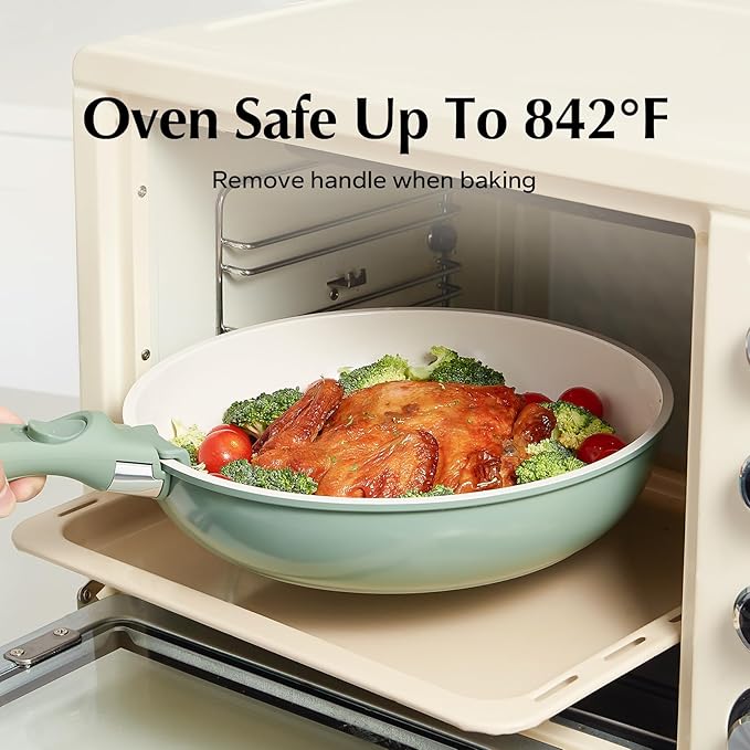 - Ultimate Convenience: Removable handle for the ultimate versatility– go from ALL kinds of stoves to the oven, to the grill, to the fridge, and onto the table in one click! The handle's detachability brings a new cooking style