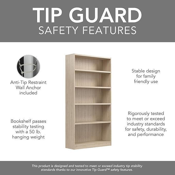 - TESTING AND WARRANTY: The Tall Bookcase has been meticulously designed and tested to meet or exceed ANSI/BIFMA quality standards for safety, durability, and performance and is backed by the Bush Furniture 1 Year Manufacturer's Warranty.