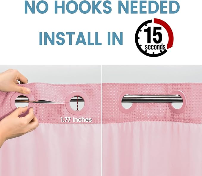Pink Shower Curtain with Liner - 230GSM Waffle Textured Heavy Duty Shower Curtains for Bathroom,71W x 74H