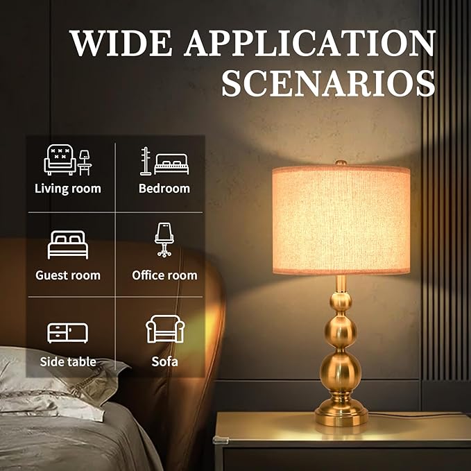 - 【Versatile Home Lighting】 With its classic design, this brass gold table lamp is suitable for decorating any corner of your home, especially in the bedroom, living room, study room, kids' room, nursery, office, or dorm. Featuring a beige linen shade and a brass gold metal base, this bedroom lamp is an ideal Christmas gift for your family and friends.