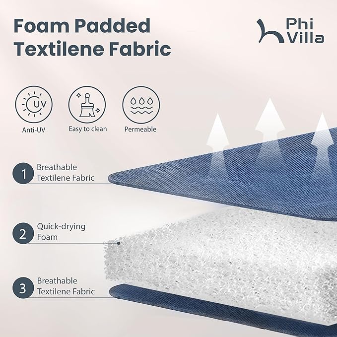 - Padded Back & Seat Design:Breathable Textilene sling fabric padded with fast dry foam on wide seat and high back add extra ease and comfort for your outdoor life.And The curved backrest design complies with ergonomic standard providing a better sitting experience