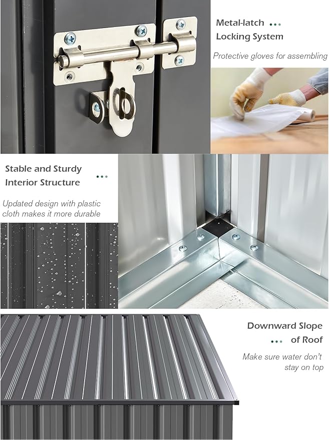 - Sturdy & Resilient: Enhancements to each metal plate elevate the shed's weight to 112 pounds, surpassing cheaper alternatives and significantly bolstering stability. Withstanding harsh weather conditions, it boasts exceptional wind resistance of approximately 70 miles per hour.