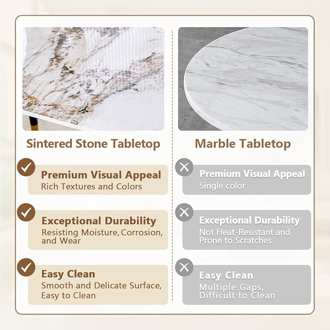 - Easy to Clean and Maintain: Enjoy hassle-free upkeep with the sintered stone tabletop, requiring simple wiping for effortless cleaning, ensuring your dining area stays pristine.