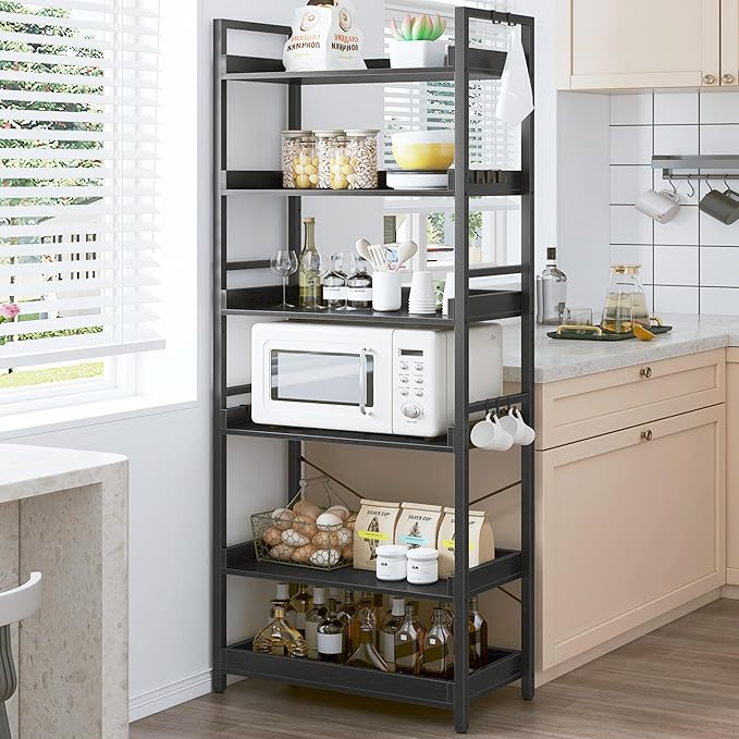 - 【8 Storage Hooks & Anti-Falling】The 5 tier bookshelf have different iron frame designs on each side, providing versatile storage options for products of various heights including books and ornaments. Additionally, 8 multipurpose hooks are included to hang headphones, toys, or other small decor.