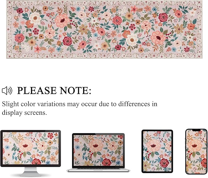 - Washable Rug: Designed for convenience, our floral rugs for bedroom resists stains with easy wipe-offs and tackles daily dust with a simple vacuum or sweeping robot. For thorough cleaning, it’s washing machine-safe.
