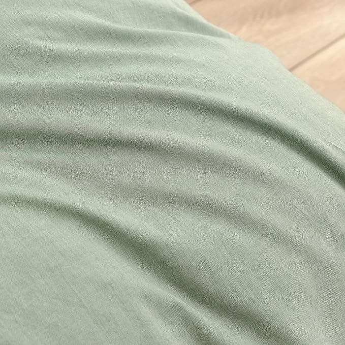 BESTOUCH Duvet Cover Set 100% Washed Cotton Linen Feel Super Soft Comfortable Chic Lightweight 3 PCs Home Bedding Set Solid Green Oversized King
