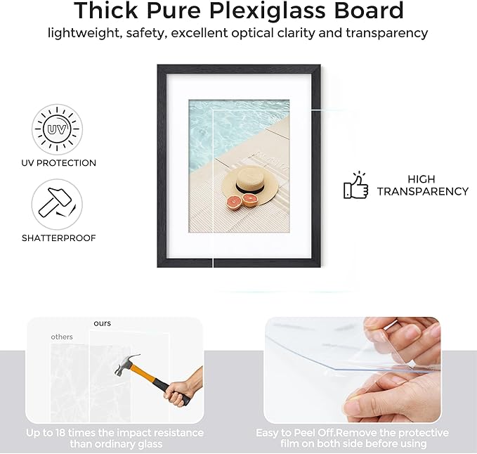 - Durable and Scratch-Resistant: With a wooden picture frame size of 5x7 inches, 0.7 inches wide, and 0.5 inches deep, every oak wood frame is shrink-wrapped with separate plastic corners to ensure it's protected during transit. It comes with a study plexiglass (clear and protective polystyrene sheet) to help you keep your pictures safe and secure