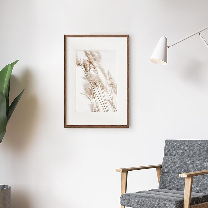Axeman 16x24 Frame With Mat for 12x18, Solid Oak Wood 16x24 Poster Frame With Tempered Glass, 16 x 24 Picture Frame for Wall, 16 by 24 Wood Frame for Home Decor, Hanging Hardware included, Walnut