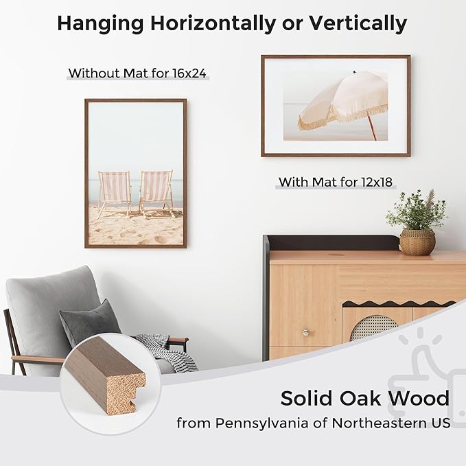 - Highest Quality OAK Materials: Our 16'' by 24'' natural wood frame made of 100% white oak wood, comes from Pennsylvania of Northeastern US, is the most widely used timber;because the excellent texture, long-lived durable characteristics, becomes the one of the most popular woods in home decor, and due to the grain pattern, suitable various kinds of decoration style