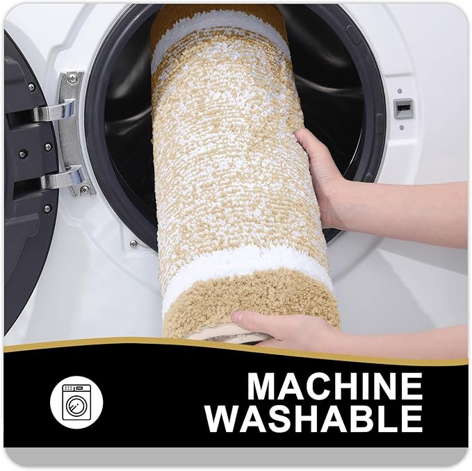- [Easy Maintenance] OLANLY bathroom mats can be machine washed separately with cold water, mild detergent which has no chlorine or bleach and tumble dry on low speed or hang dry. Also, the color will not fade and will stay vibrant for many years even with after washing and drying many times.