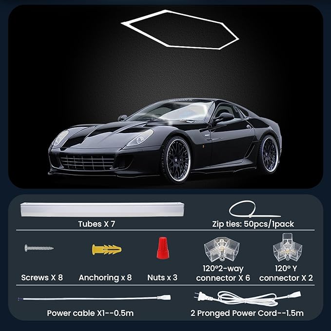 - 【Note: Multiple Power Supply for Lighting】You can flexibly DIY the Hexagonal Garage Lights into various shapes. When connecting multiple sets of lights together, use multiple power cords as needed. It's crucial to note that one power cord can only connect up to 36 1.2-meter-long light tubes, or a maximum of 75 0.42-meter-long light tubes (approximately 17-18 hexagons). Using multiple power cords for lighting is essential to prevent overheating or burnout. If a single power cord connects too many light tubes, it may lead to damage. Note: For any issues, feel free to contact us for replacement or refund at any time