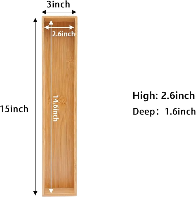 Bamboo Drawer Organizer,Kitchen Utensil Organizer Silverware Tray,Cutlery Holder, Wood Storage Box for Flatware, Makeup, Bathroom, Office Desk (Bamboo, 15 * 3 * 2.6)