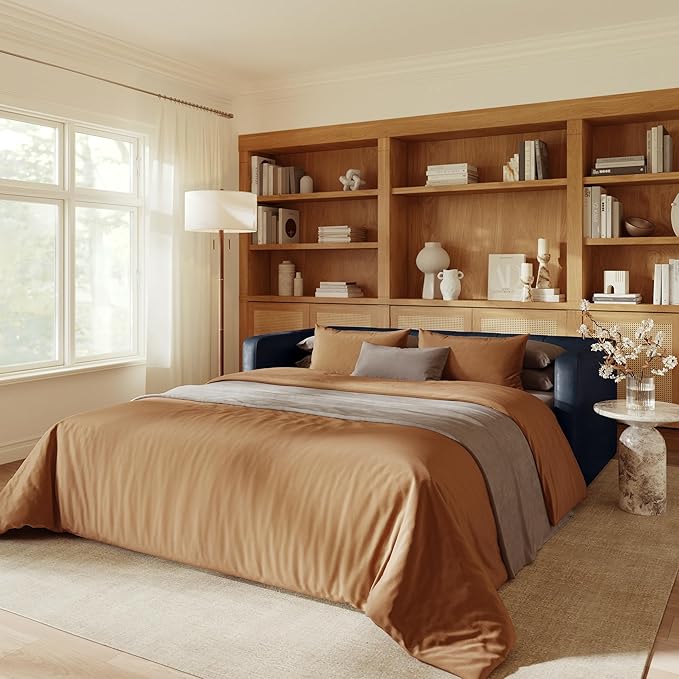 POLY & BARK Napa 82" Leather Pull-Out Convertible Sleeper Sofa in Midnight Blue