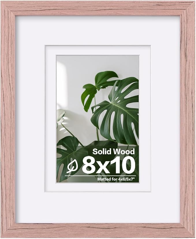 Egofine 8x10 Picture Frame Made of Solid Wood Covered by Plexiglass, Display Pictures 4x6/5x7 with Mat or 8x10 Without Mat for Table Top Display and Wall Mounting Photo Frame, Peach Pink