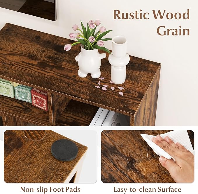 - [Multi-functional Home Addition]: Elevate your living area with this minimalist TV table that seamlessly blends with any home decor style. Whether used for storage, display, or as a console, it serves as a versatile and practical addition to your living room, bedroom, or entryway, enhancing the functionality and aesthetic appeal of your space.