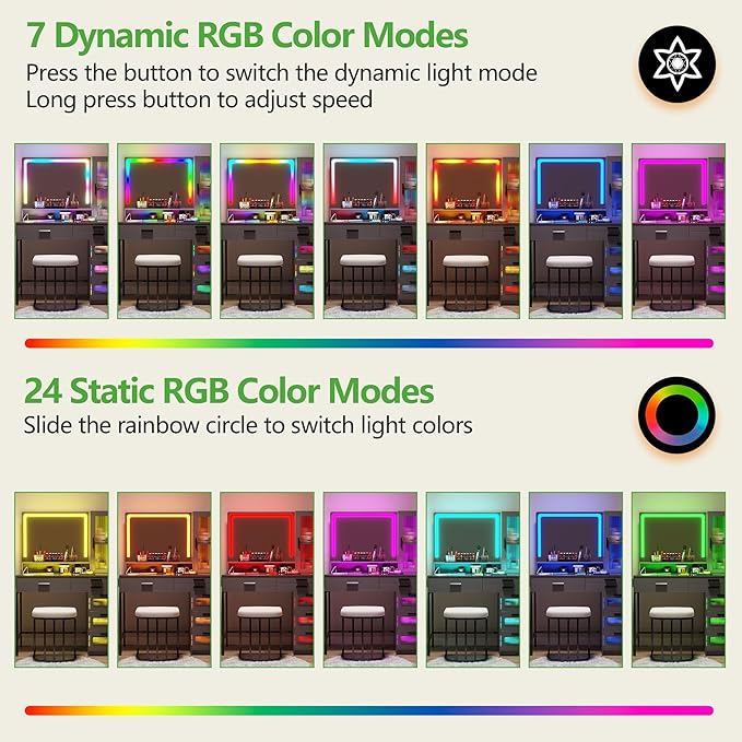 - 【Colorful Lights】This vanity set with a total of 24 static lights and 7 dynamic lights is perfect for festivals, events, parties, performances and exhibitions, making your party the highlight.